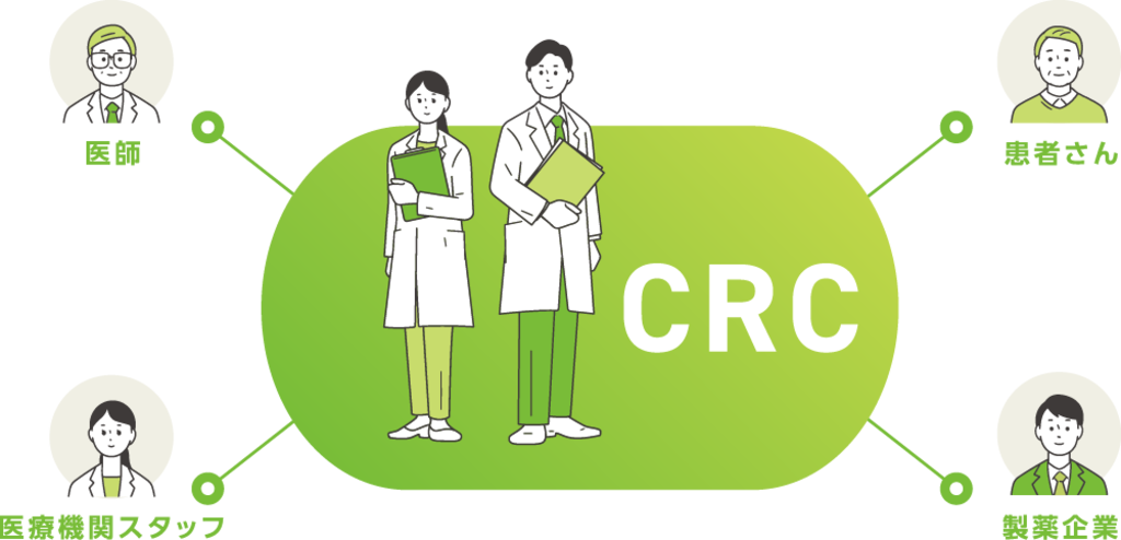 CRCとは、医療機関で行われる治験において、医師や看護師、製薬企業の担当者、そして患者さんをつなぐ調整役です。