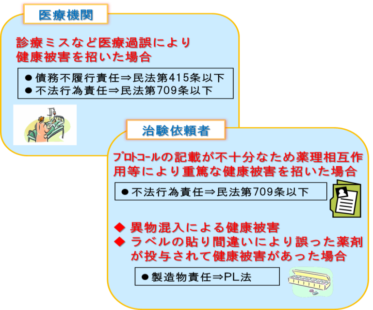 また、『臨床研究に関する倫理指針』(2009年4月改正)においても、被験者の健康被害の補償が義務付けられ、補償措置を求める研究の範囲と求める補償措置が明確にされています。