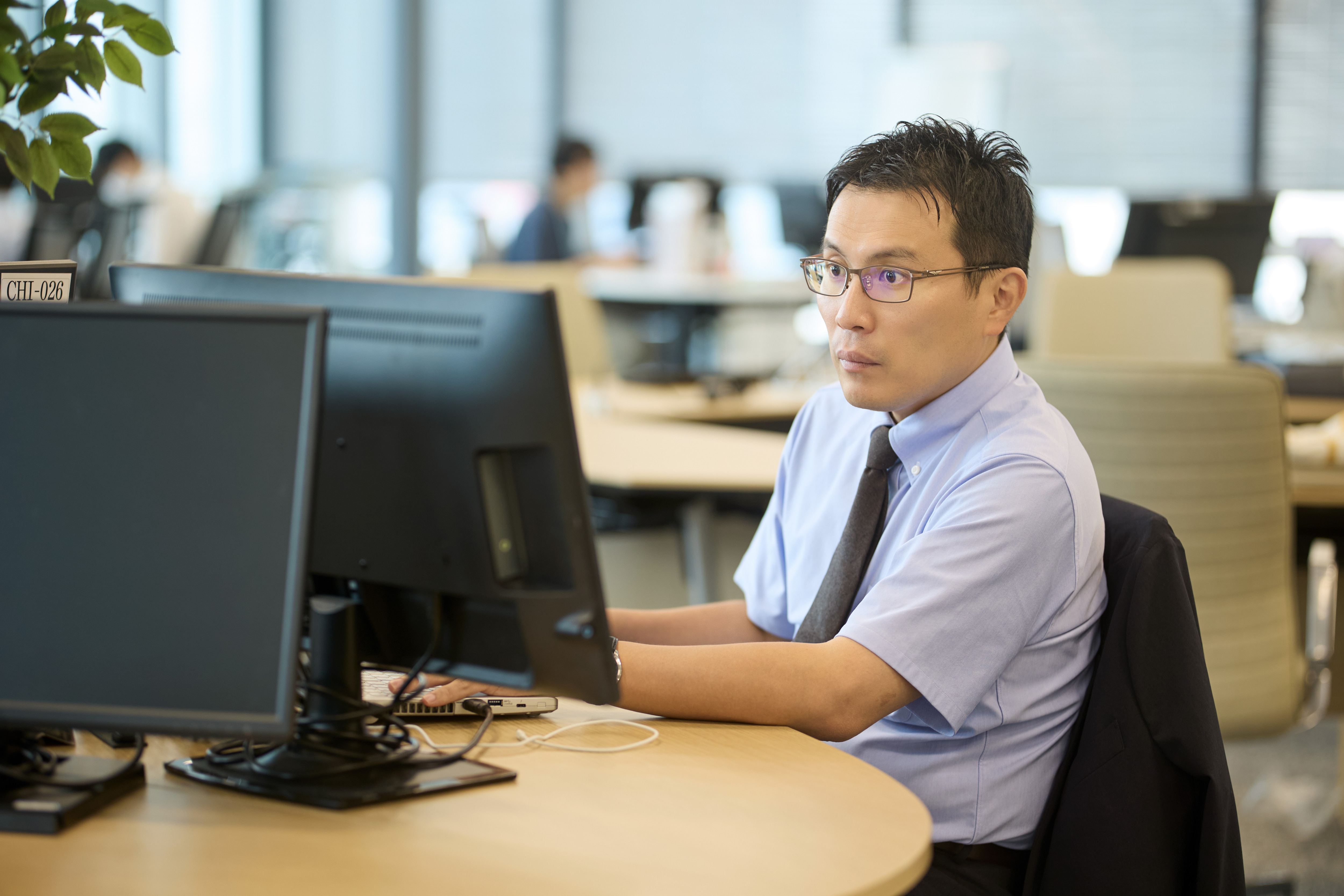 入社前のイメージとは違い、フランクで話しやすい先輩が多く、入社後数ヶ月とは思えないほど居心地の良さを感じているそう。新しいオフィスの奇麗さや、テレワークを含む柔軟な働き方も魅力のひとつ。まだ小さい子どもたちを育てるJ.Hさんにとって、コアタイムなしフレックス制度やテレワーク制を活用できるのはありがたい環境だと言います。